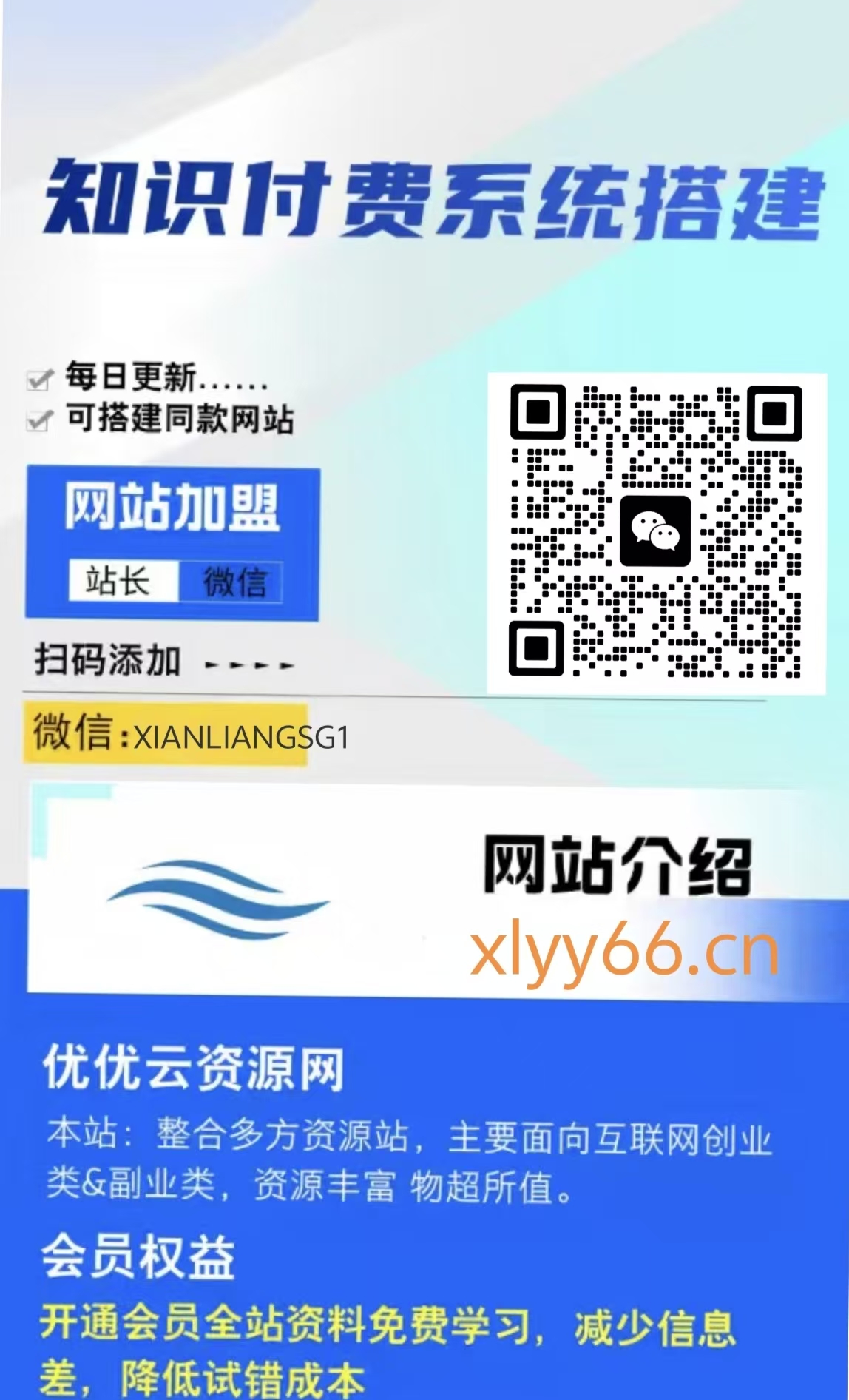 加盟优优云网创,加盟搭建同款知识付费资源网站,实现长期稳定被动收入~